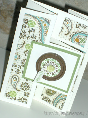 Voici un pliage que j'affectionne particulièrement car il est rapide à faire mais donne un effet bien sympathique. J'y ai rajouté une mini carte que j'atacherai avec du fil de lin sur un petit paquet de sablés.